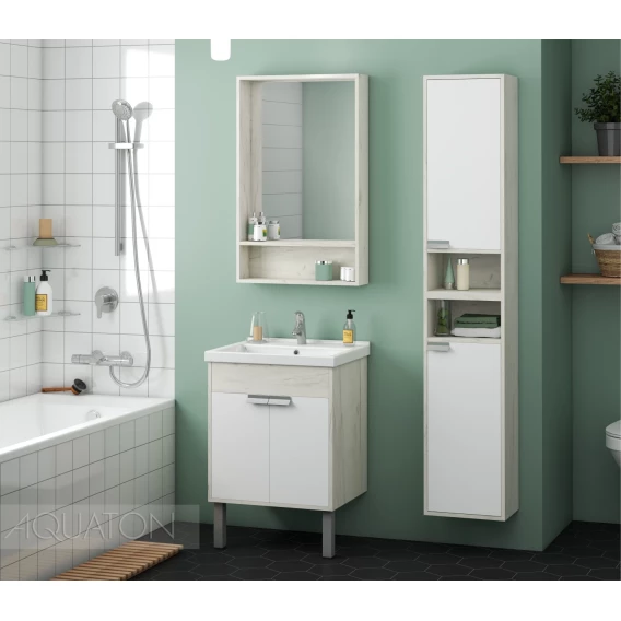 Комплект мебели белый глянец/дуб крафт 60 см Акватон Флай 1A237301FAX10 + 1WH302421 + 1A237602FA860