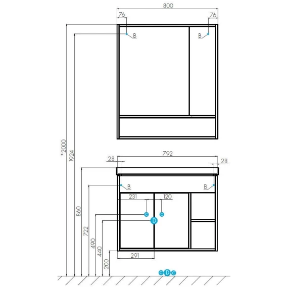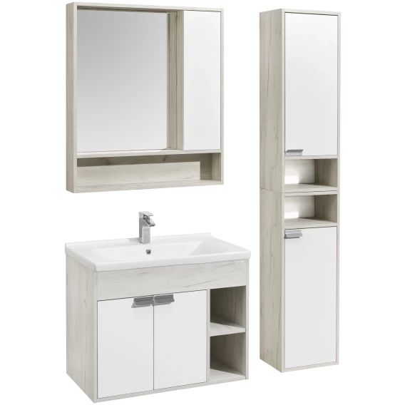 Комплект мебели белый глянец/дуб крафт 80 см Акватон Флай 1A237401FAX10 + 1WH302251 + 1A237702FAX10