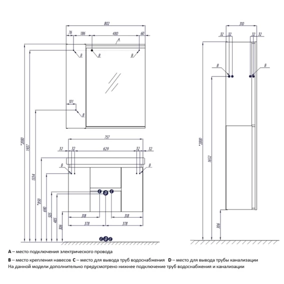 Тумба белый глянец 55 см Bellezza Сиена 4633909660011