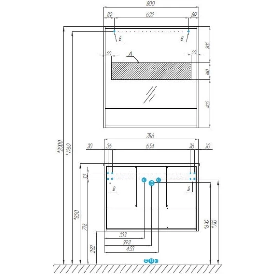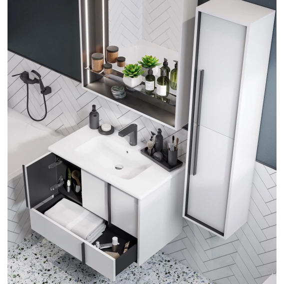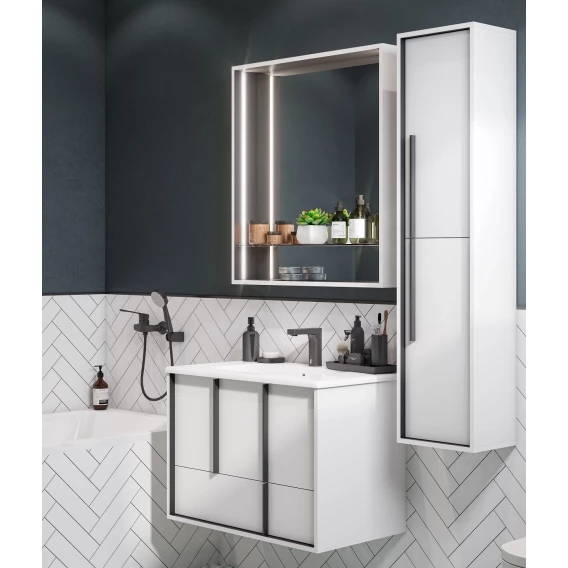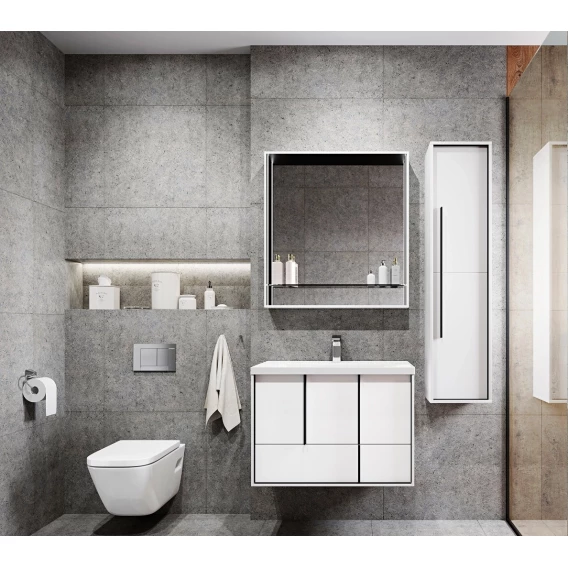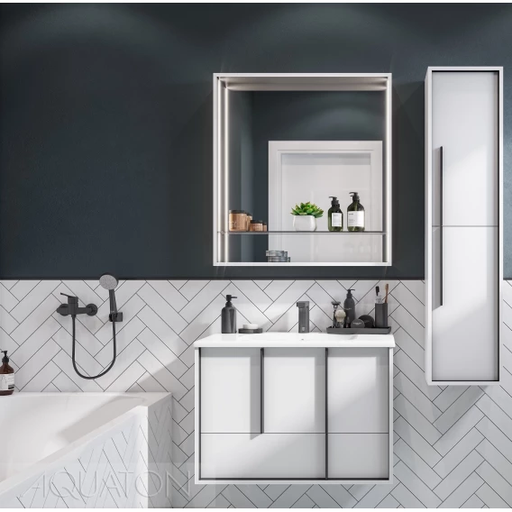 Комплект мебели белый матовый 80 см Акватон Ривьера 1A239001RVX20 + 732799C000 + 1A239102RVX20