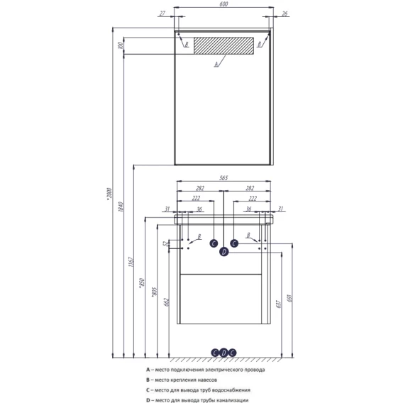 Комплект мебели белый глянец 60 см Акватон Стоун 1A231401SX010 + 1WH302421 + 1A231502SX010