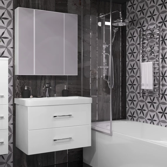Комплект мебели белый глянец 80,5 см с зеркальным шкафом Opadiris Арабеска