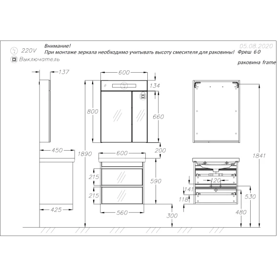 Механизм доводчика, Полочка, Подсветка, Выключатель
