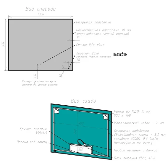 Зеркало 100x80 см черный Bond Cube M36ZE-10080