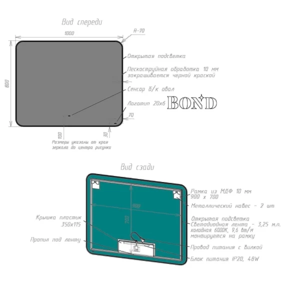 Зеркало 100x80 см черный Bond Loft M35ZE-10080