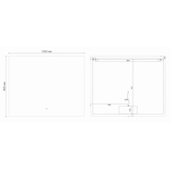Крепление, LED подсветка, Сенсорный выключатель, Функция анти-пар