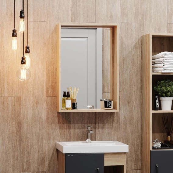 Зеркало в ванную комнату Onika ТИМБЕР 48 отражает современные тенденции в дизайне мебели для ванных комнат: минимализм с простыми и понятными формами, цвета дуба с роскошной текстурой, отсутствие лишних деталей.Зеркальное полотно создано на основе серебряной амальгамы, которая обеспечивает качественное изображение, влагостойкость и долгий срок эксплуатации.Зеркальный шкаф выполнен из ЛДСП, устойчивой к механическим воздействиям, перепадам температур и высокой влажности.Подвесы для крепления зеркала к стене - в комплекте.