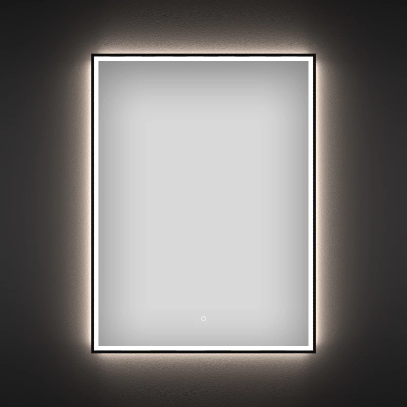 Влагостойкое зеркало с подсветкой для ванной комнаты Wellsee 7 Rays' Spectrum 172201160, размер 50 х 65 см, сенсор, с черным матовым контуром (настенное зеркало с яркой фронтальной LED-подсветкой)