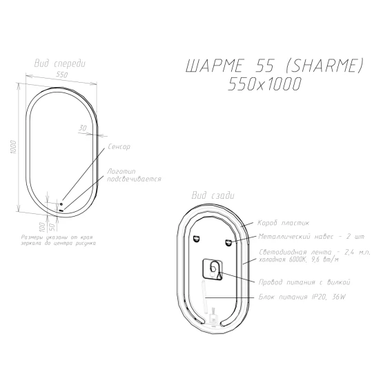 Крепление, LED подсветка, Сенсорный выключатель, Вилка