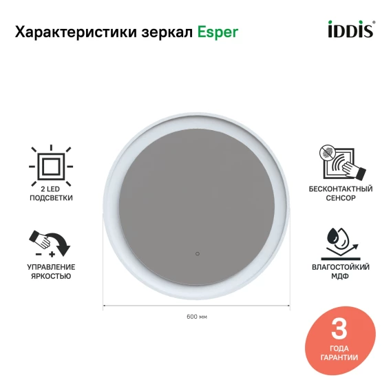 Зеркало 60x60 см белый матовый IDDIS Esper ESP600Ri98