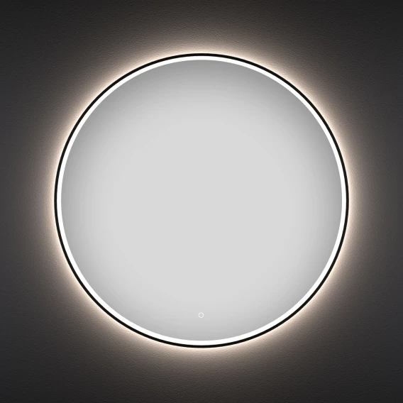Влагостойкое зеркало с подсветкой для ванной комнаты Wellsee 7 Rays' Spectrum 172200210, диаметр 65 см, сенсор, с черным матовым контуром (настенное зеркало с яркой фронтальной LED-подсветкой)