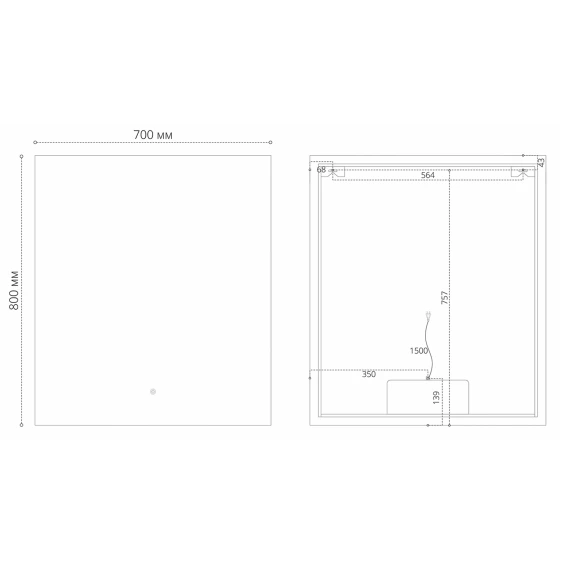 Крепление, LED подсветка, Сенсорный выключатель, Функция анти-пар