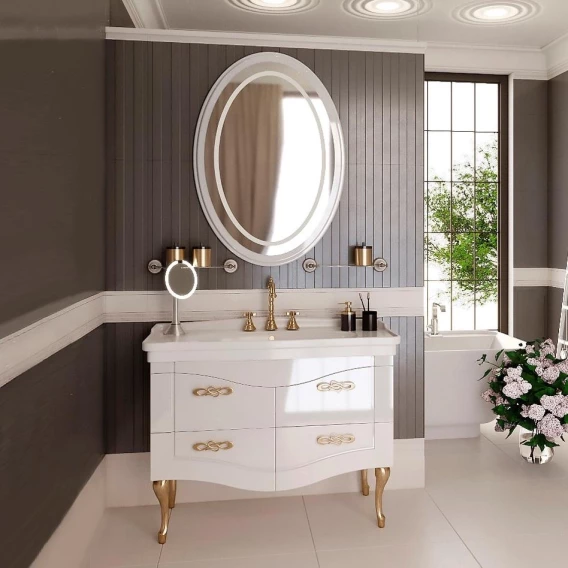 Прекрасное в своей индивидуальности овальное зеркало для ванной комнаты Onika АДЕЛЬ 70 - это беспроигрышный компромисс между красотой и функциональностью, классической внешностью и современным содержанием. В качестве источника света в зеркале использована пылевлагозащитная светодиодная лента, придающая уют ванной комнате своим мягким рассеянным светом. Зеркальное полотно создано на основе серебряной амальгамы, которая обеспечивает качественное изображение, влагостойкость и долгий срок эксплуатации. Обрамление зеркала выполнено из МДФ, покрытой эмалью, устойчивой к механическим воздействиям, перепадам температур и высокой влажности. Две аккуратных стеклянных полочки, идущие в комплекте, отлично сочетаются с зеркалом и могут быть использованы для хранения часто используемых предметов. Подвесы для крепления зеркала и полочек - в комплекте.