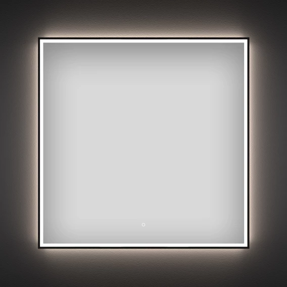 Влагостойкое зеркало с подсветкой для ванной комнаты Wellsee 7 Rays' Spectrum 172200440, размер 75 х 75 см, сенсор, с черным матовым контуром (настенное зеркало с яркой фронтальной LED-подсветкой)
