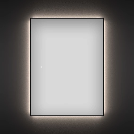 Влагостойкое зеркало с подсветкой для ванной комнаты Wellsee 7 Rays' Spectrum 172201060, размер 80 х 100 см, сенсор, с черным матовым контуром (настенное зеркало с фоновой LED-подсветкой на стену)