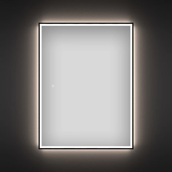 Влагостойкое зеркало с подсветкой для ванной комнаты Wellsee 7 Rays' Spectrum 172201380, размер 80 х 100 см, сенсор, с черным матовым контуром (настенное зеркало с яркой фронтальной LED-подсветкой)