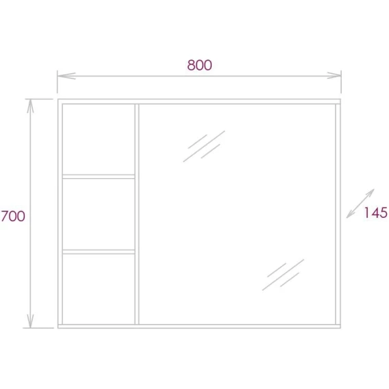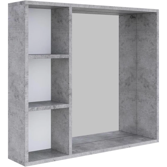 Навесной зеркальный шкаф для ванной комнаты Onika ДЕВИС 80 отличается чёткой геометрией форм и создан для тех, кто ценит современный лаконичный дизайн, холодный брутальный эффект бетона, а также безупречное исполнение. 3 открытые полки обеспечивают быстрый доступ к часто используемым аксессуарам, место под зеркалом предназначено для косметических средств или декоративных элементов.Зеркальное полотно создано на основе серебряной амальгамы, которая обеспечивает качественное изображение, влагостойкость и долгий срок эксплуатации.Зеркальный шкаф выполнен из ЛДСП, устойчивой к механическим воздействиям, перепадам температур и высокой влажности.Подвесы для крепления шкафа - в комплекте.