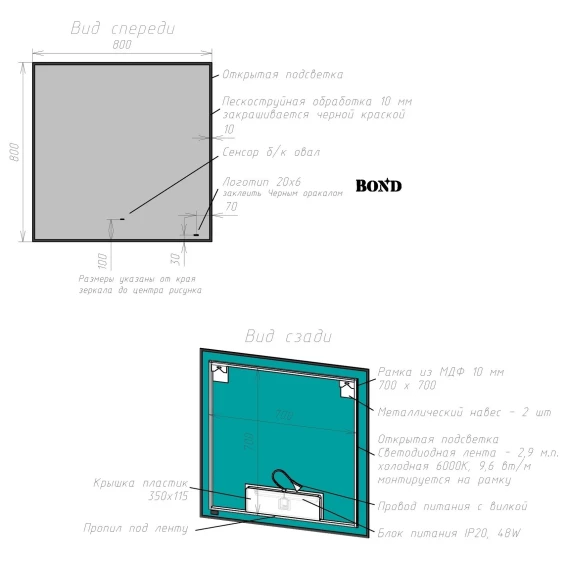 Зеркало 80x80 см черный Bond Cube M36ZE-8080