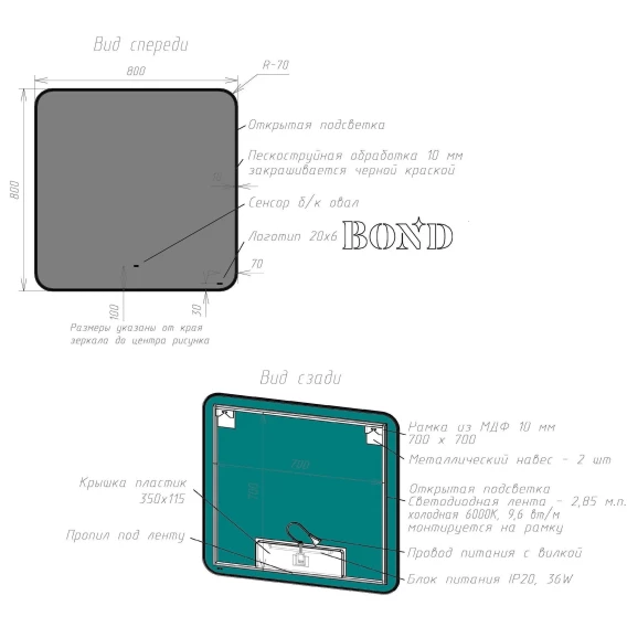 Зеркало 80x80 см черный Bond Loft M35ZE-8080