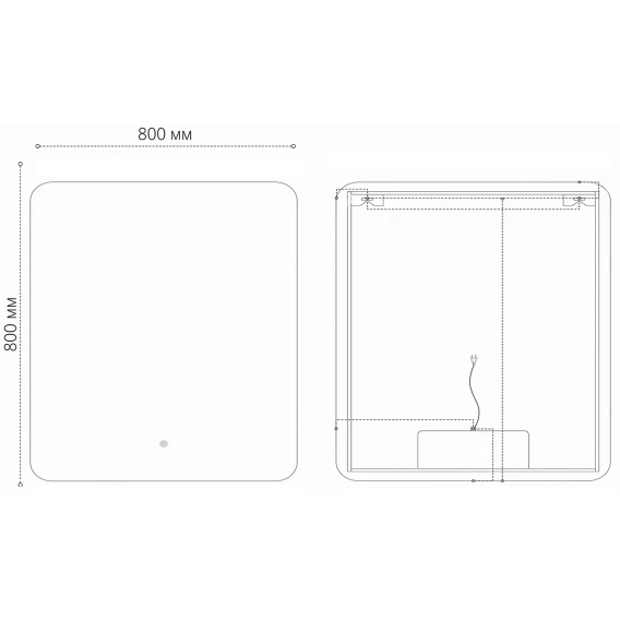 Крепление, LED подсветка, Сенсорный выключатель, Функция анти-пар