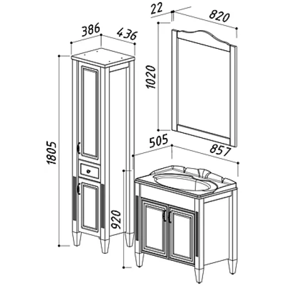 Зеркало 82x102 см слоновая кость золотая патина Belux Империя В 85 4810924220721