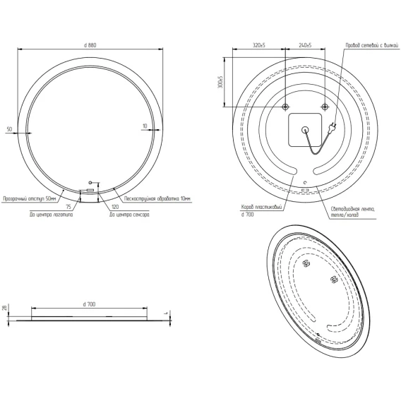 Крепление, LED подсветка, Сенсорный выключатель, Вилка