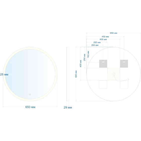 Крепление, LED подсветка, Сенсорный выключатель, Вилка