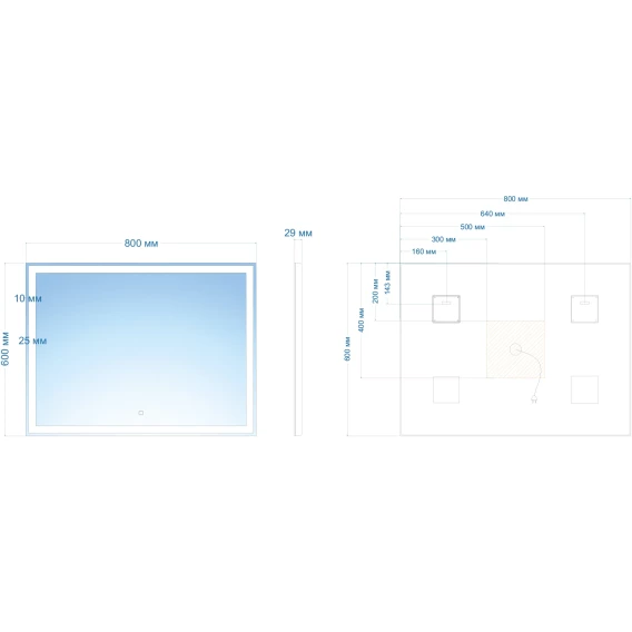 Крепление, LED подсветка, Сенсорный выключатель, Вилка