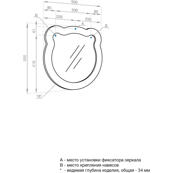 Зеркало Акватон Каспер Мишка 1A283502CR0E0 50x50 см, детское, голубой матовый