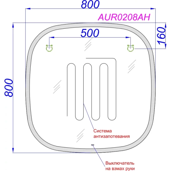 LED подсветка, Сенсорный выключатель, Функция анти-пар