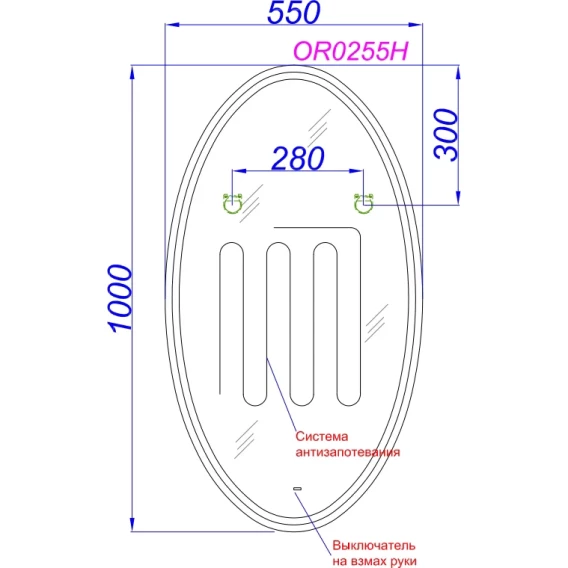 LED подсветка, Сенсорный выключатель, Функция анти-пар