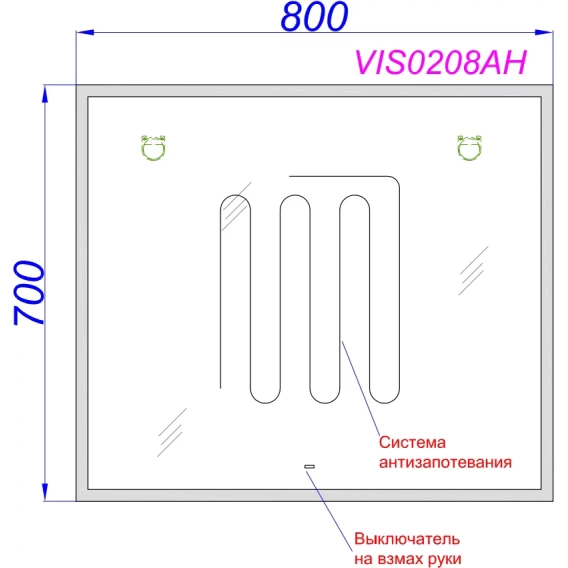 LED подсветка, Сенсорный выключатель, Функция анти-пар