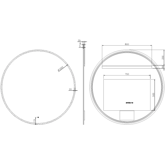 Крепление, LED подсветка, Сенсорный выключатель, Функция анти-пар