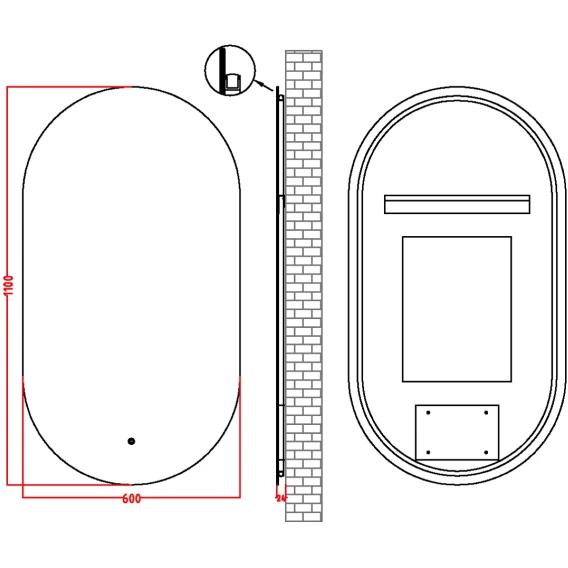 Крепление, LED подсветка, Сенсорный выключатель, Функция анти-пар