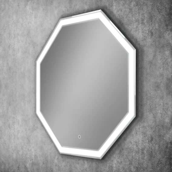 • Зеркало влагостойкое, оснащенное светодиодной LED подсветкой с диммером, гравировкой и сенсорным выключателем.