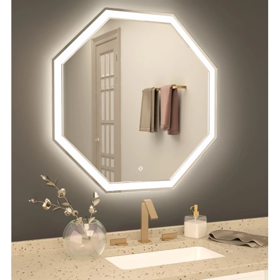 • Зеркало влагостойкое, оснащенное светодиодной LED подсветкой с диммером, гравировкой и сенсорным выключателем.