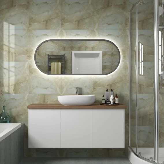 Зеркало Art&Max Bari AM-Bar-500-1200-DS-F 50x120 см, с LED-подсветкой, сенсорным выключателем, диммером, серый матовый