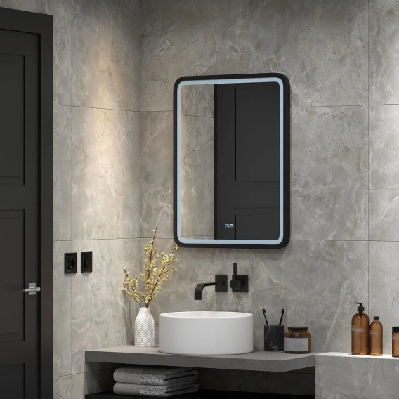 • Зеркало оснащенное светодиодной LED подсветкой ,функцией антизапотевания и сенсорным выключателем.