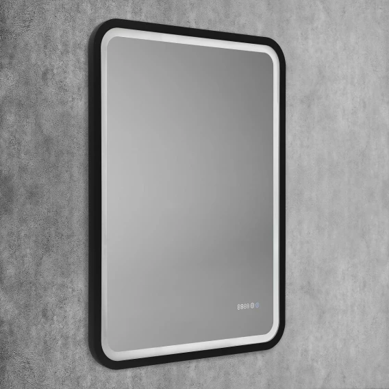 • Зеркало, оснащенное светодиодной LED подсветкой.часами и функцией антизапотевания.