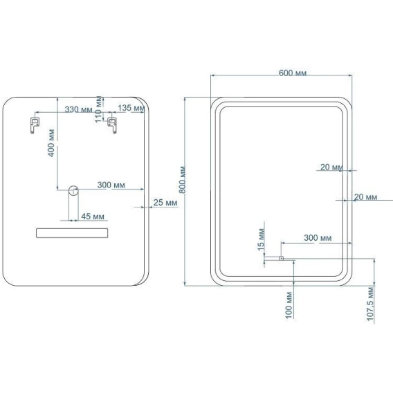 • Оснащение: зеркало, крепеж, коробка, инструкция.