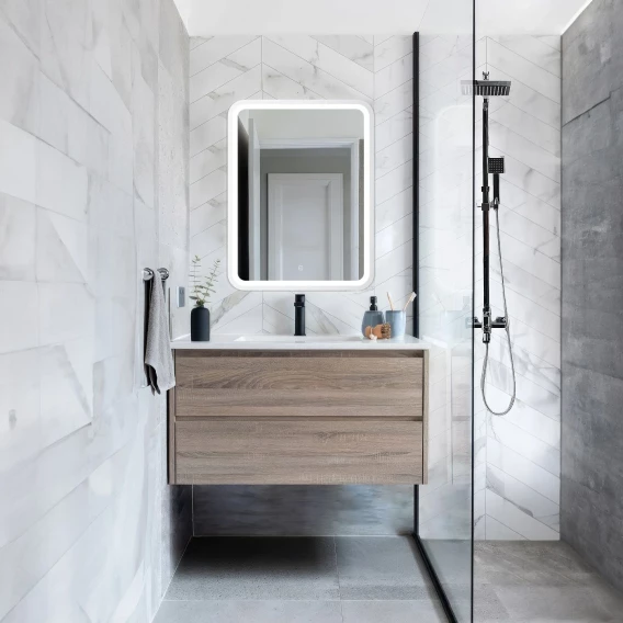 • Зеркало оснащенное светодиодной LED подсветкой с диммером и сенсорным выключателем.