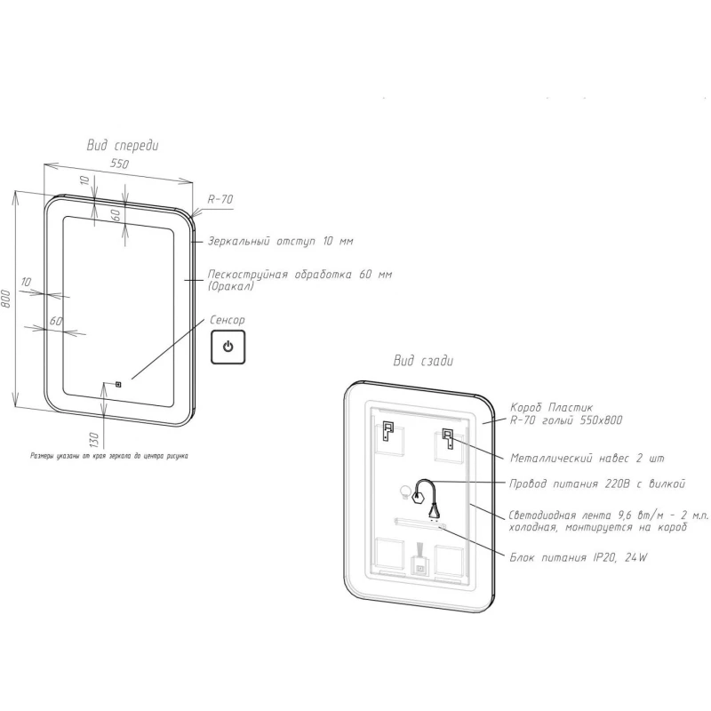 • Оснащение: зеркало, крепеж, коробка, инструкция.