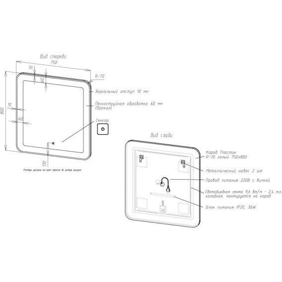 • Оснащение: зеркало, крепеж, коробка, инструкция.