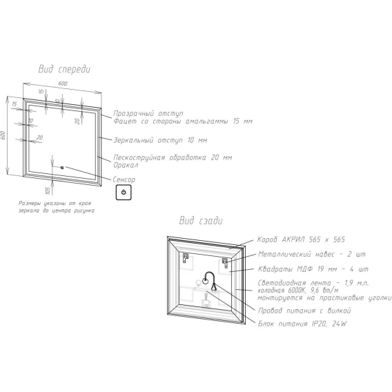 • Оснащение: зеркало, крепеж, коробка, инструкция.