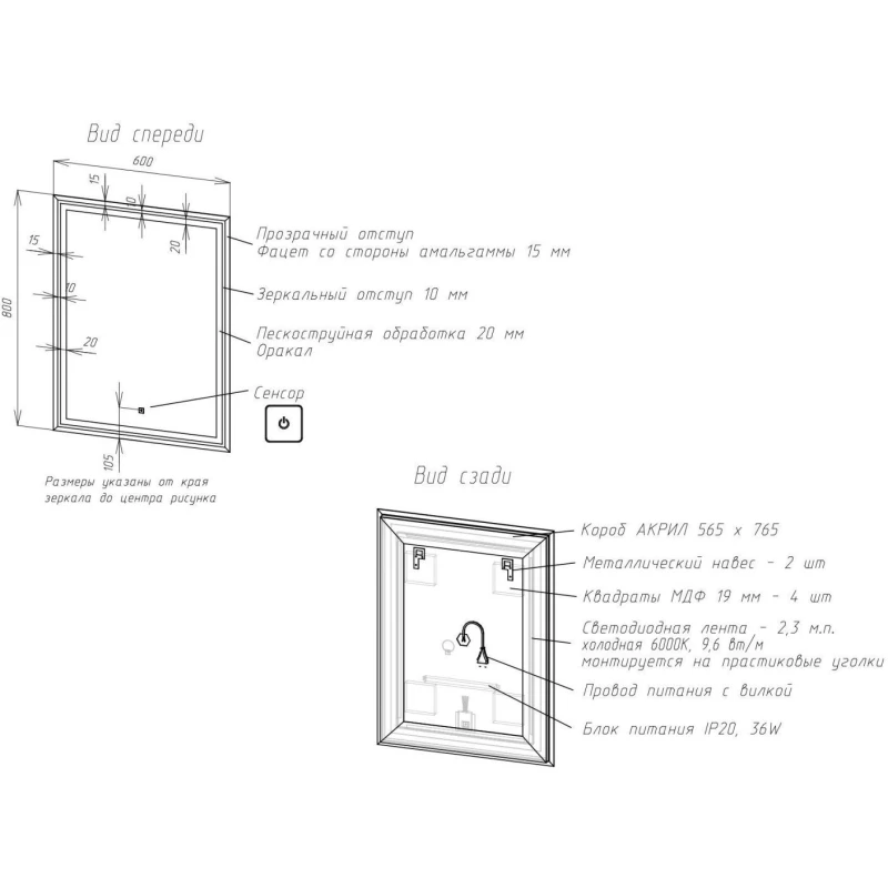 • Оснащение: зеркало, крепеж, коробка, инструкция.