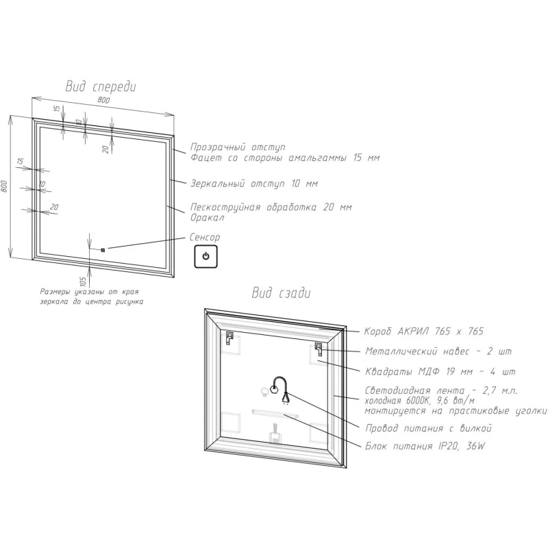 • Оснащение: зеркало, крепеж, коробка, инструкция.
