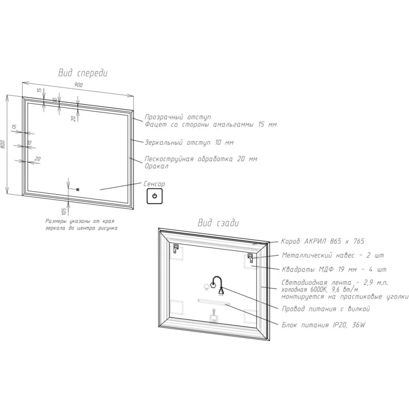 • Оснащение: зеркало, крепеж, коробка, инструкция.