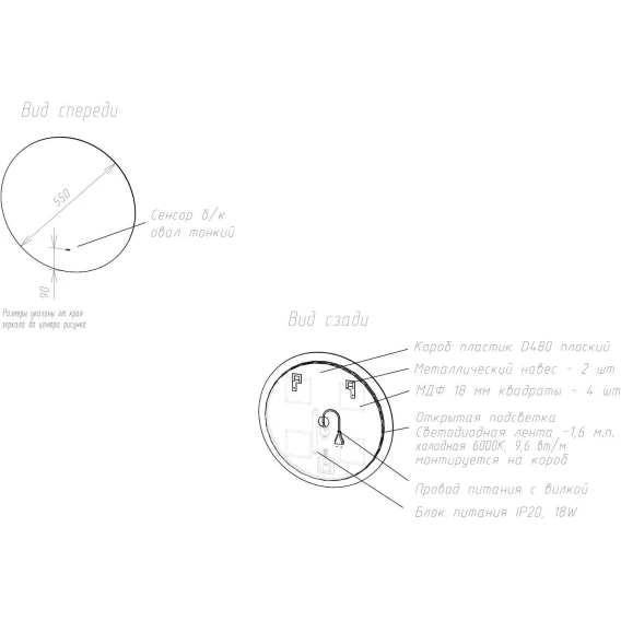• Оснащение: зеркало, крепеж, коробка, инструкция.