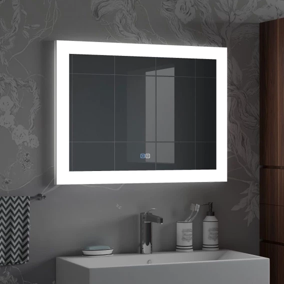 • Зеркало оснащенное светодиодной LED подсветкой, функцией антизапотевания и сенсорным выключателем.