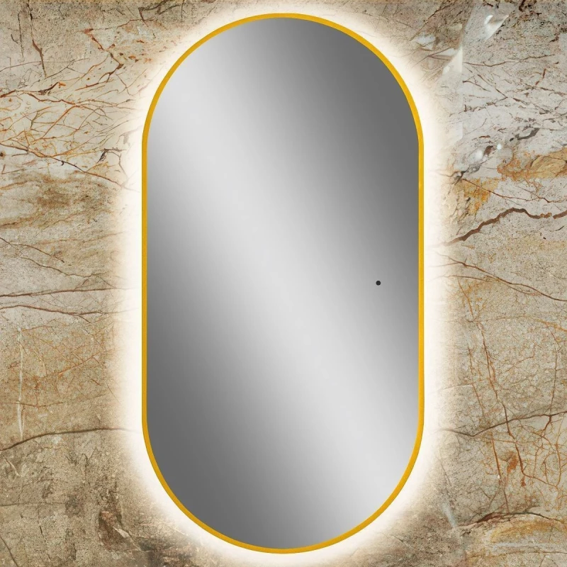 • Овальное зеркало, окантованное золотым шиммером - стильный элемент декора.